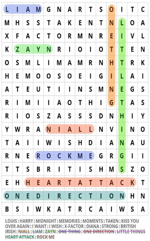 बैंड एक दिशा पर अनौपचारिक शब्द खोज खेल, प्लस 450 से अधिक अन्य शब्द खोज पहेली.