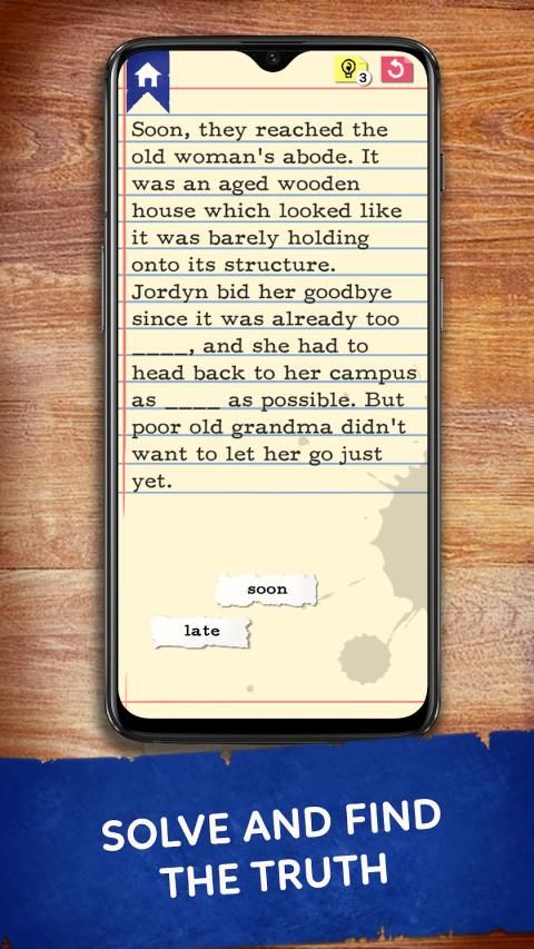 Unfold the mystery with this addicting word story games. Enjoy the thrilling word story and play word games along the way. The missing pieces of the story will be given in the form of words at the bottom of the page. You just have to drag those words to set them in the correct sentence. It sounds simple but we guarantee you that you will get addicted to this word story game and will not get enough of it. Download