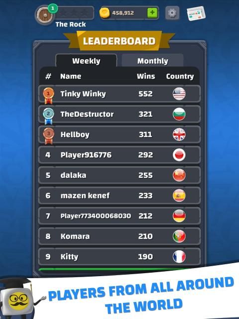 • दुनिया भर में साप्ताहिक और मासिक लीडरबोर्ड।