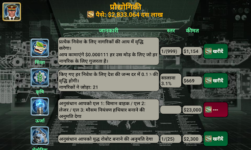 * आपकी राष्ट्रीय नीति को बनाने के लिए जासूसी, युद्ध, व्यापारिक, और आर्थिक विकल्पों की सैकड़ों विकल्प।