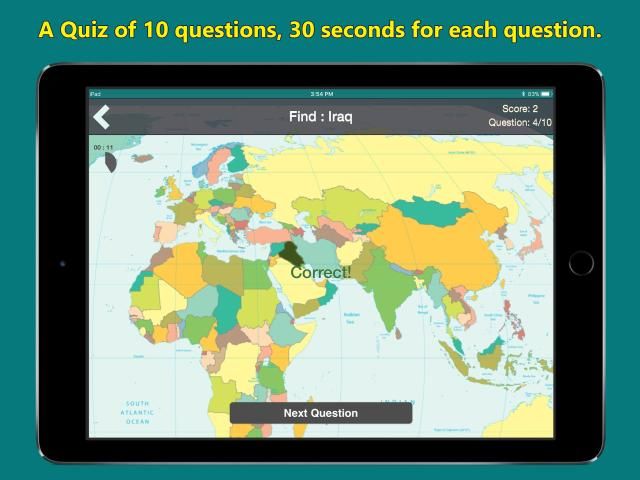 This app is an interesting game that will challenge your knowledge of world geography. You can play in two major modes: