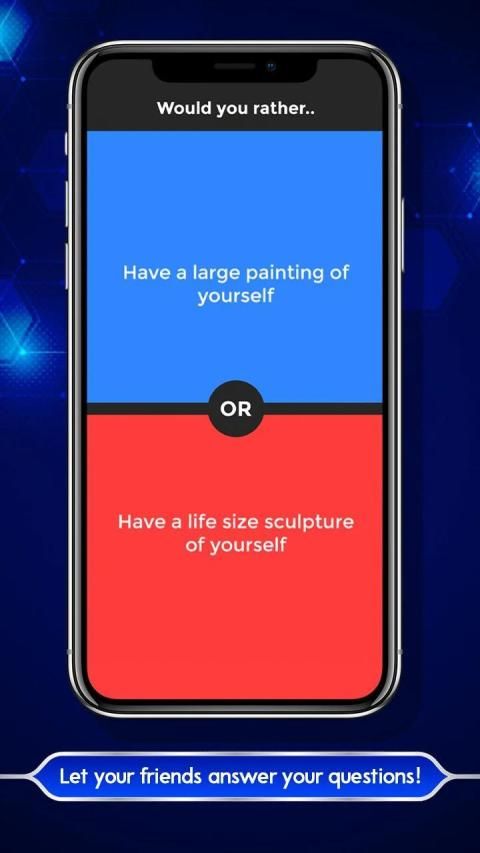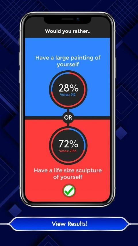 Would You Rather is a simple trivia casual game where you need to choose would you rather scenario 1 or scenario 2.