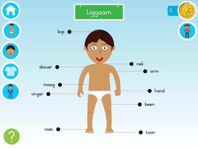 Afrikaans Wardrobe is an Afrikaans educational app for young children that teaches them the names (and pronunciation) for different body parts, clothing and weather.