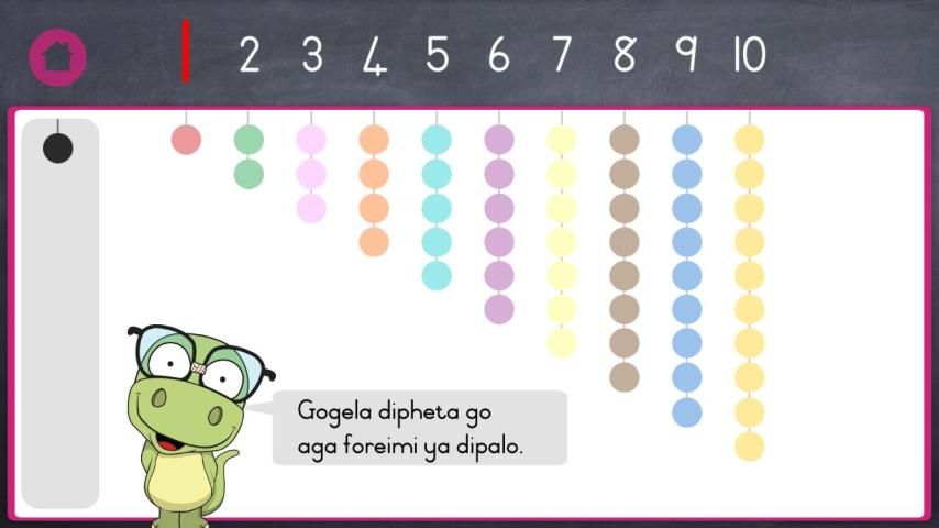 सोथो 123 कि जानवरों के साम्राज्य से बच्चों के अनुकूल गिनती माला और अक्षरों का उपयोग संख्यात्मक सिखाता है युवा बच्चों के लिए एक शैक्षिक अनुप्रयोग है।