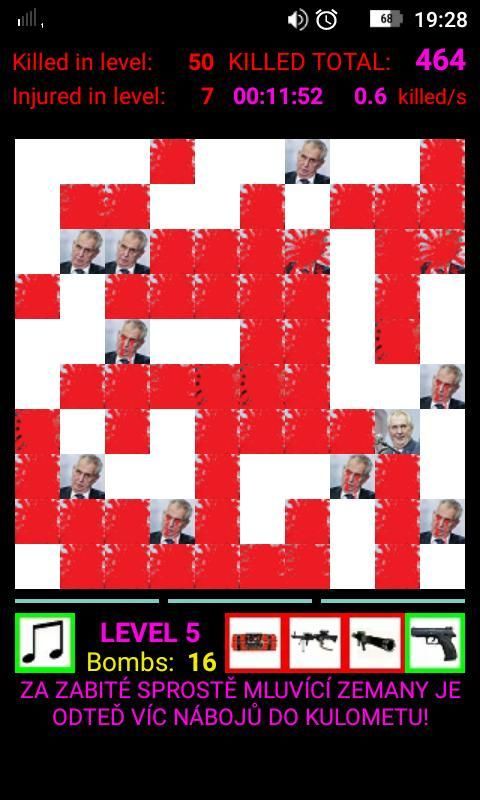 Hra obsahuje 10 úrovní. Pro postup do nové úrovně je nutno zničit alespoň 100 Zemanů a zaplnit bitevní pole zničenými Zemany.