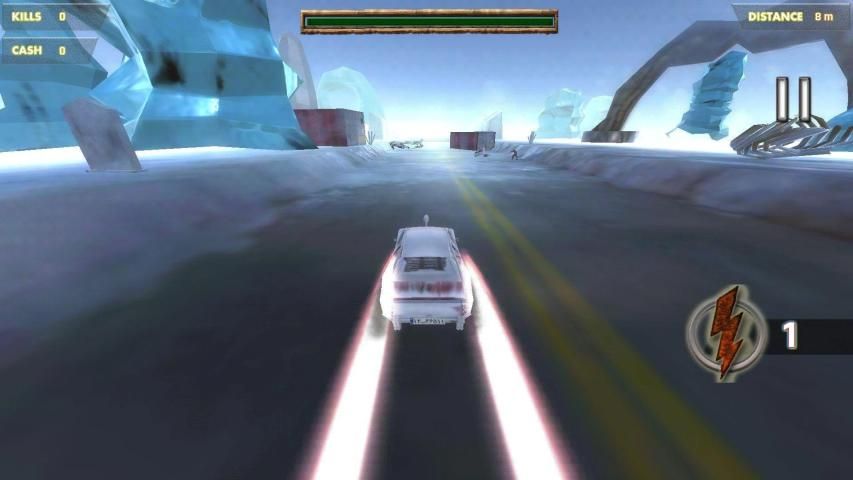 - ज़ोंबी-ब्लास्टिंग रेसिंग गेमप्ले।