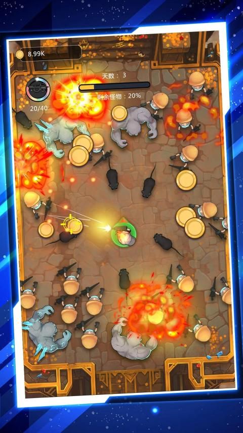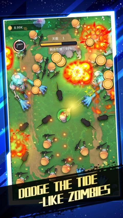 This is a shooting game that defends against zombies invasion, synthetic firearms and fight against fierce zombie groups. Fierce battles, diverse weapons, and randomly triggered Buffs constitute a fire-fighting battle picture.