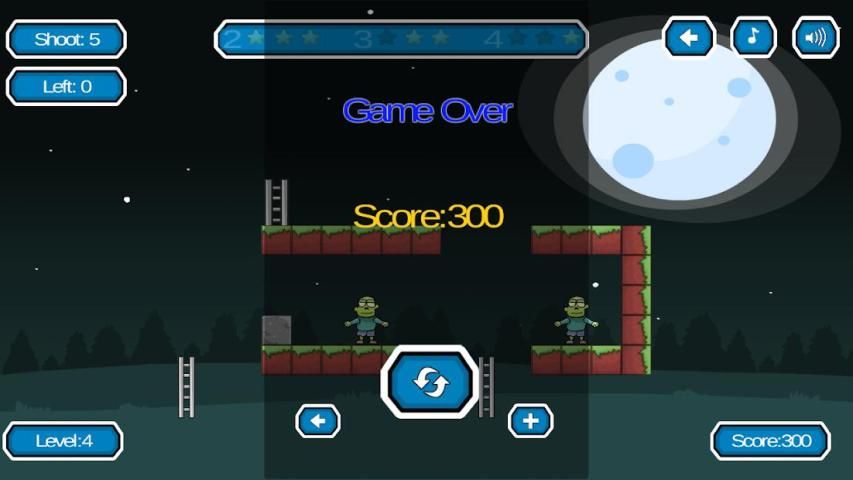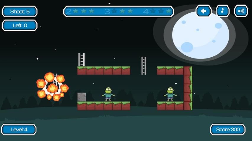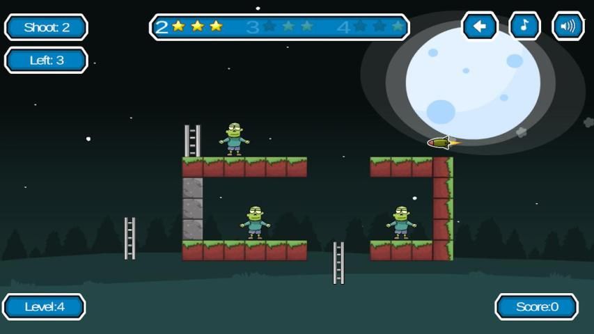खेल के प्रत्येक स्तर में कुछ शॉट होंगे, यदि आप सभी ज़ोंबी को मारने के बिना सभी शूटिंग का उपयोग करते हैं तो गेम समाप्त होता है। ज़ोंबी शूटिंग में 21 स्तर आपके कौशल को चुनौती देते हैं।