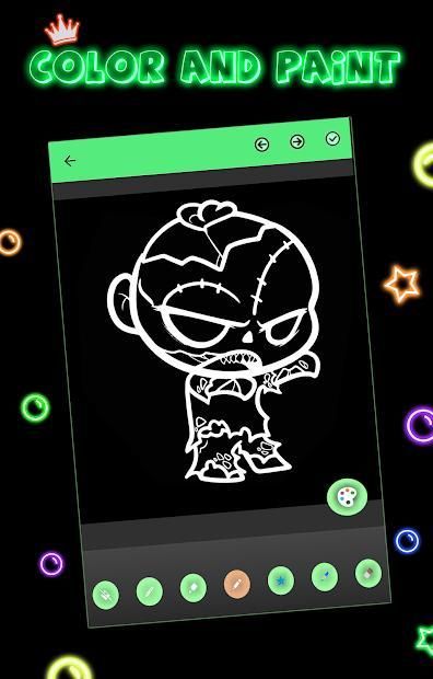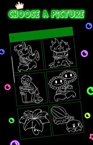 "Draw Glow Zombies vs Plants" is a realistic coloring game with more than 50 pictures of Zombie vs Plant world.