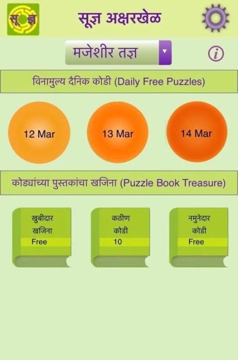 Soodnya Aksharkhel एक मजेदार, मुफ्त शब्द सभी उम्र और कौशल के स्तर के मराठी और संस्कृत प्रेमियों का आनंद लेने के लिए पहेली खेल ऐप है। वयस्कों के लिए डेली टाइमपास। कोई टाइपिंग। बच्चों, जानने को शिक्षित, अभ्यास और शब्दावली का निर्माण करने के लिए के लिए बढ़िया है।