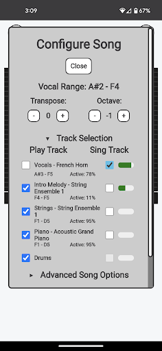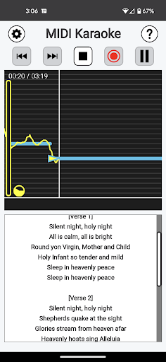 किसी भी मिडी फ़ाइल गीत को कराओके गेम में बदल दें।आपकी गायन पिच को मापा जाता है और इसकी सटीकता से स्कोर किया जाता है।अपने प्रदर्शन की एक वीडियो रिकॉर्डिंग सहेजें।
