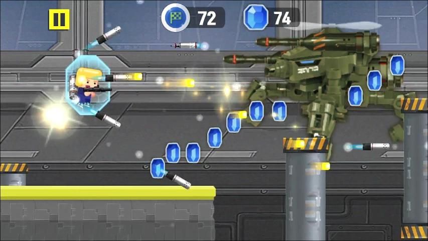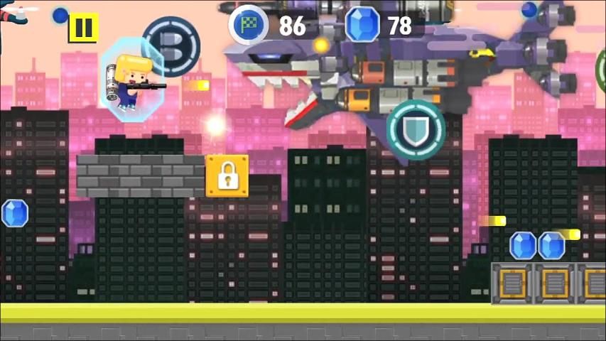 This is a story of the jetboys (or rocketman) who own awesome jet packs, a revolutionary backpack with jets and laser guns to blast enemies. Now the mech warriors from battle star want to conquer the Earth! You must annihiliate the enemies and shoot’em all up while avoiding traps and other obstacles on your way. To move & jump around you can enjoy joy ride from your jet pack. What you have to do is to control the characters to avoid shots from enemies and to jump high and move down as you are blasting enemies. This retro gaming will take you back to the era where 2D platform and console games are very popular. It’s such a great adventure to go back to the future and jump around the cities while blasting the mech warriors.