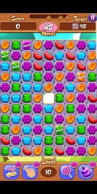 कैंडी रॉयले की रहस्यमय मजेदार दुनिया की खोज, विस्फोट के लिए 3 या उससे अधिक कैंडीज़ के समूहों से मेल खाने के लिए पंक्तियों या स्तंभों को बस स्लाइड करें