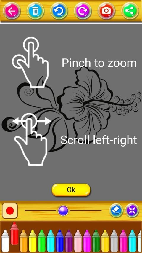 ड्राइंग और भरने के लिए उपयोग करने के लिए उज्ज्वल और सुंदर रंगों के कई विकल्प।