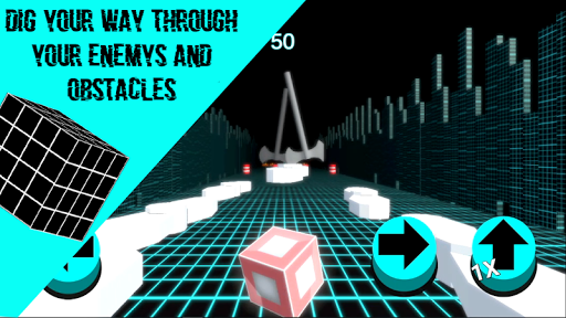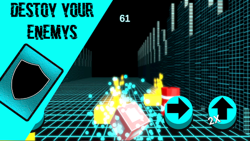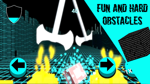 A rolling cube trying to go the end while many obstacles try to stop him but there is some stuff that helps him on his ways like the shield and the speed up