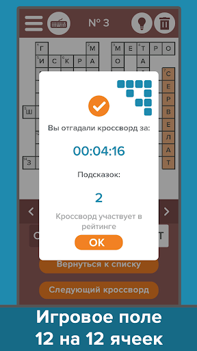 खेल पूरे परिवार के लिए उपयुक्त है।इसमें विज्ञापन और 50 अतिरिक्त क्रॉसवर्ड खरीदकर परियोजना का समर्थन करने की क्षमता शामिल है।सभी उभरते प्रश्नों के लिए, आप मेल द्वारा, सोशल नेटवर्क के माध्यम से या सीधे एप्लिकेशन में & quot के माध्यम से हमसे संपर्क कर सकते हैं; हमें & quot; लिखें;