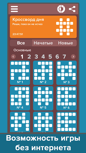 इंटरनेट के बिना क्रॉसवर्ड का एक संग्रह, हर दिन के लिए पहेली।मन के लिए लाभ के साथ समय बिताएं, उन्मूलन की जांच करें, सभी प्रश्नों और उत्तरों का पता लगाएं।आनंद के लिए और प्रतिबंधों के बिना खेलें: आप किसी भी क्रॉसवर्ड पहेली को हल करना शुरू कर सकते हैं और असीमित संख्या में युक्तियों का उपयोग कर सकते हैं।