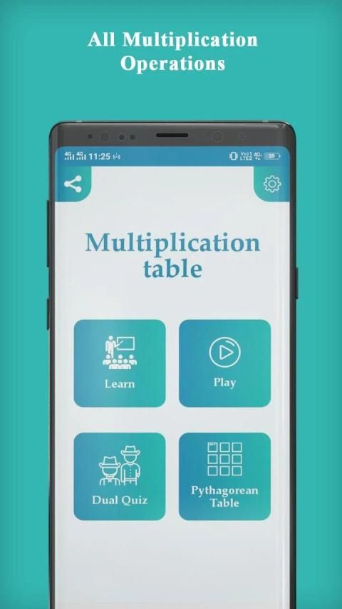गुणन खेल ऐप ध्यान और गुणन तालिका सीखने पर ध्यान देता है।
