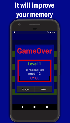 Nback Memory is a game, based on scientific studies, which will help you to improve your focus and memory. The main idea of the game is to follow step by step a pattern of numbers shown on the screen. Those numbers are in the range of 1 to 4.