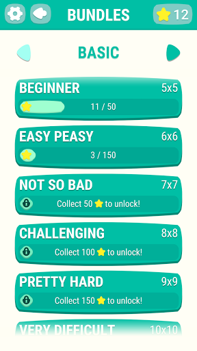 Each puzzle has a grid, and the goal is to connect points of the same color by drawing "pipes" between them, so that the entire grid is occupied by the pipes, ensuring that the pipes do not intersect.