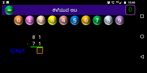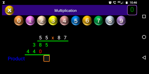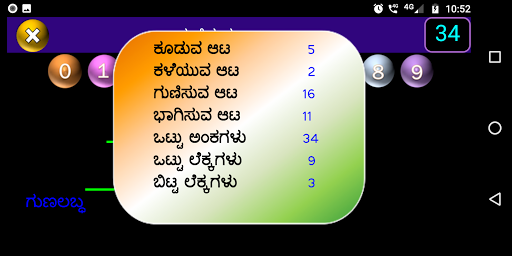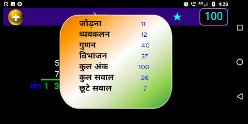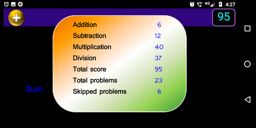 स्कोर बटन कुल स्कोर दिखाता है और जब आप इसे छूते हैं तो आप प्रत्येक गणितीय ऑपरेशन के लिए स्कोर देख सकते हैं। आप स्कोर को रीसेट करने के लिए कभी भी स्कोर बटन को लंबे स्पर्श कर सकते हैं और बच्चे को फ़िर से शुरू करने दे सकते हैं।