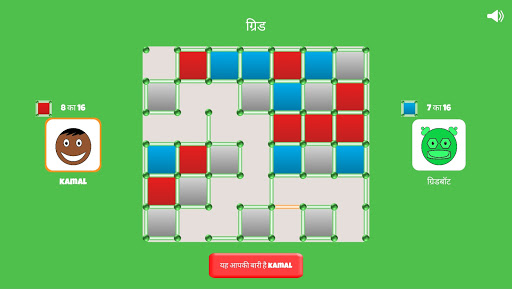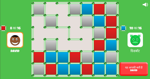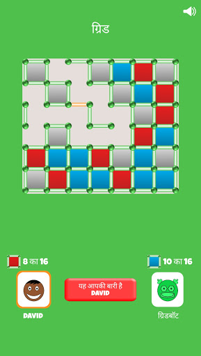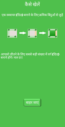 बारी-बारी से, आपको वर्ग (ग्रिड) बनाने के लिए लगातार बिंदुओं को मिलाना होगा। सबसे अधिक ग्रिड पूरा करने वाला खिलाड़ी विजेता होगा।