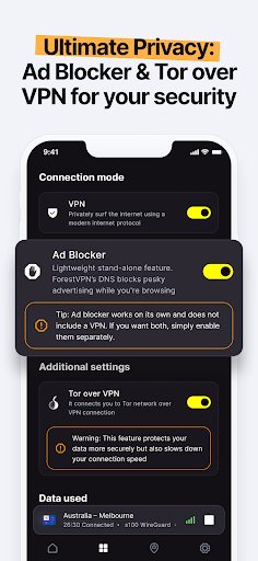 प्रमुख विशेषताएं?कुशल प्रदर्शन: ForestVPN उच्च