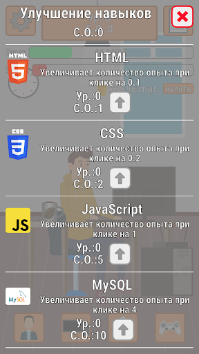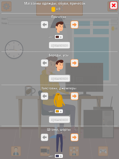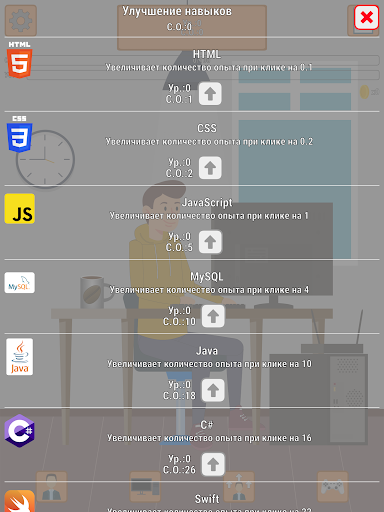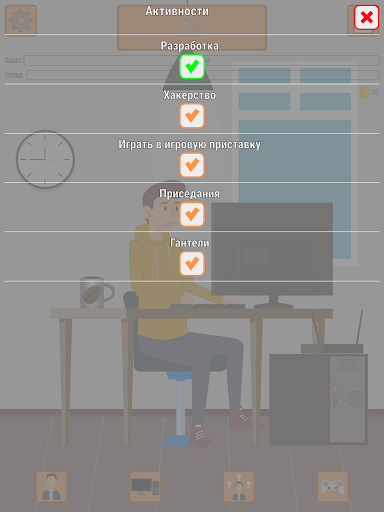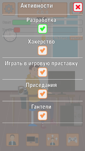 क्या आप हमेशा डेवलपर बनना चाहते हैं? यदि उत्तर 'हां' गेम 'देव मैन: साइबर टाइकून' आपके लिए है! कार्य करें, पूर्ण कार्यों के लिए पैसे प्राप्त करें, अपने स्तर को बढ़ाएं और अपने कौशल में सुधार करें। यदि आप विकास से थक गए हैं, तो मनोरंजन के लिए अन्य गतिविधियां हैं: हैकिंग, गेम कंसोल, स्क्वाट्स, डंबेल में गेम। आप खेल चरित्र बदल सकते हैं: हेयर स्टाइल, चश्मा, कपड़े, टोपी और जूते बदलें। आप अपने कंप्यूटर, फर्नीचर और कमरे में भी सुधार कर सकते हैं।