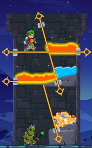 🔮 भागने के लिए पिन खींचें, बहुत आसान! राक्षस को नष्ट करने के लिए पिन खींचने के लिए अपनी मानसिकता का उपयोग करें, फिर राजकुमारी और खजाने के बगल में आएं।