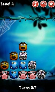 Tap and slide animals left or right. Three or more animates of the same kind in a line disappear. Watch out for turns, you only have a limited number!