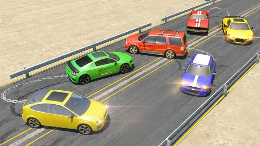 Chained cars look simple chain break game but actually it takes high speed driving skills and perfect car driver to maintain speed before it clash while racing.
