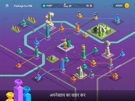 पैकेज इंक बढ़ते शहर के लिए एक वितरण प्रणाली को डिजाइन करने के बारे में एक सुंदर खेल है। विभिन्न केन्द्रों के बीच एक संबंध बनाएँ और कारखानों, पुलिस स्टेशनों, कैफे, पुस्तकालयों, बुटीक, सैलून, होटल, पिज़्ज़ेरिया, पालतू जानवरों की दुकानों, या स्कूलों जैसे कई गंतव्यों को खिलाएं।