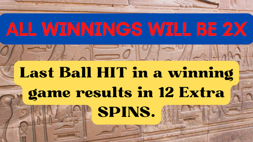 Last Ball HIT in a winning game gives 12 additional extra spins & all wins would be 2x or doubled.