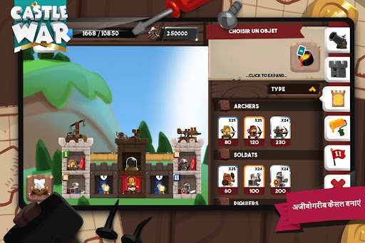 उन सब एलेमेंट्स का इस्माल करके अपनी खुद की कैसल बनाएं, जिसमें हो जादुई शक्तियों वाली टावर्स, दुश्मनों पर अटैक करते हुई सेना या उसकी दीवारें तोड़ती भालों और पत्थरों की बारिश.