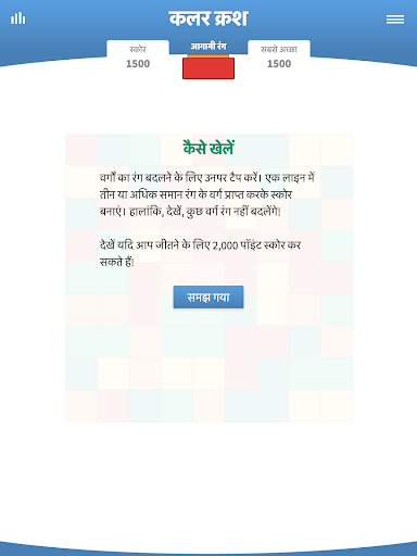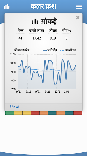 हमारे आंकड़े के ट्रैकर से समय के साथ अपने शीर्ष तथा औसत कलर क्रश स्कोर ट्रैक करें।