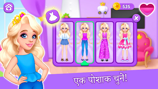 👑दिलचस्प कार्य और पुरस्कार! राजकुमारी की इच्छाओं के साथ-साथ खेल के अन्य कार्यों को भी पूरा करें। आप गुड़िया को स्वादिष्ट भोजन पकाने, आराम से स्नान करने, सौंदर्य उपचार करने और फैशन हाउस के आसपास कुछ वस्तुओं को खोजने में मदद करेंगे।