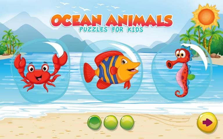 Puzzles for kids - OCEAN ANIMALS is an interactive game for kids aged 1-5 that helps to develop tactile and motor skills while playing and learning animals and animal sounds.