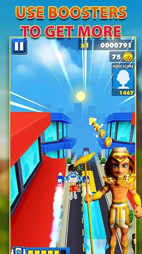 Drag to jump or slide and to move left or right. Avoid hitting trucks, buses and subway trains. Run around the city,gather as many as the coins you can.