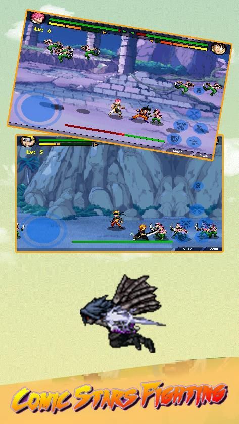 you like anime fighting games! choose your Legendary Super Hero from more than 28 characters, including the most famous ones in the anime universe: Pirate blue sea , Ninja Council, Shinobi fighterz ,Shinigamis ,Dragon warrior, saiyan fighterz and more ... Now all of these have gathered in one game. Fight as you wish.