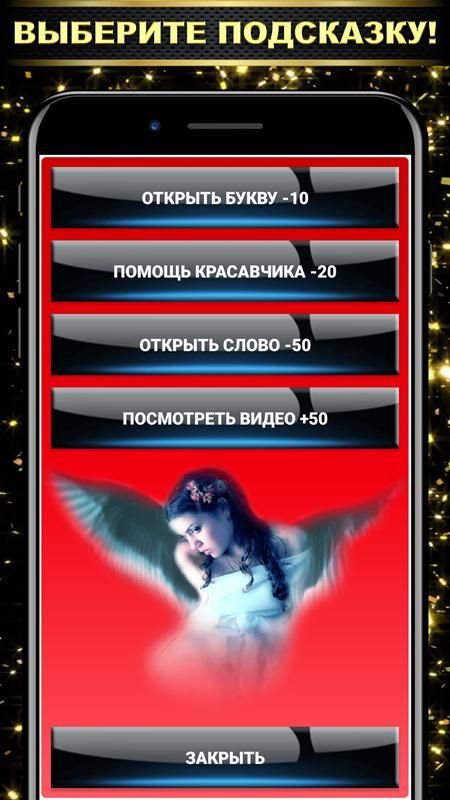 Так же в нашей игре есть 3 подсказки: Открыть букву, Открыть слово или попросить помощи у красавчика.