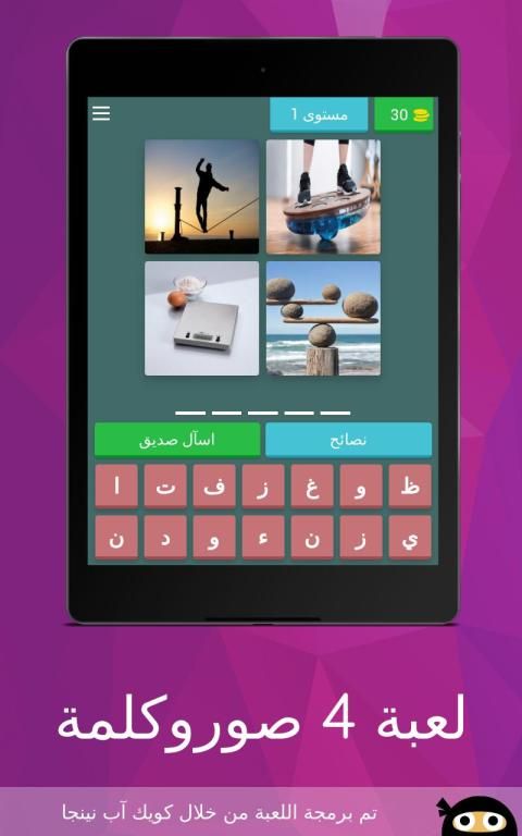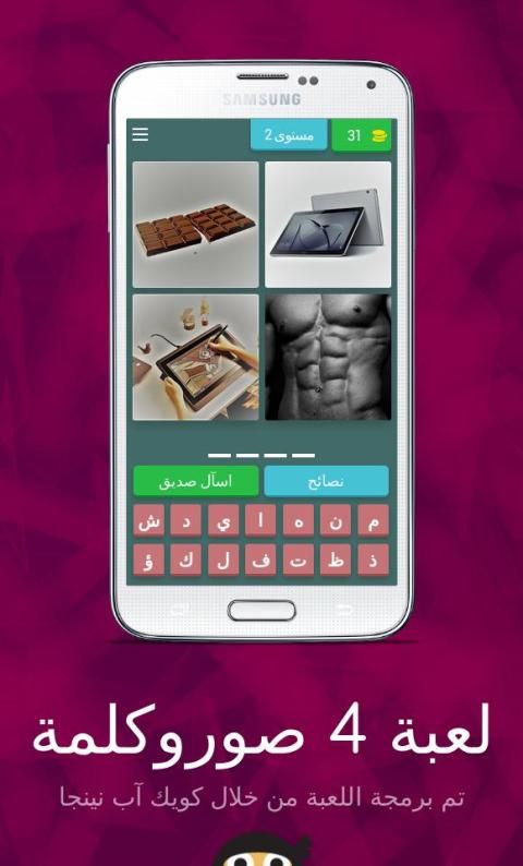 مع تطبيقات موبايل في تحديث 20,000+ مستحدمين يحملون لعبة 4 صوروكلمة
