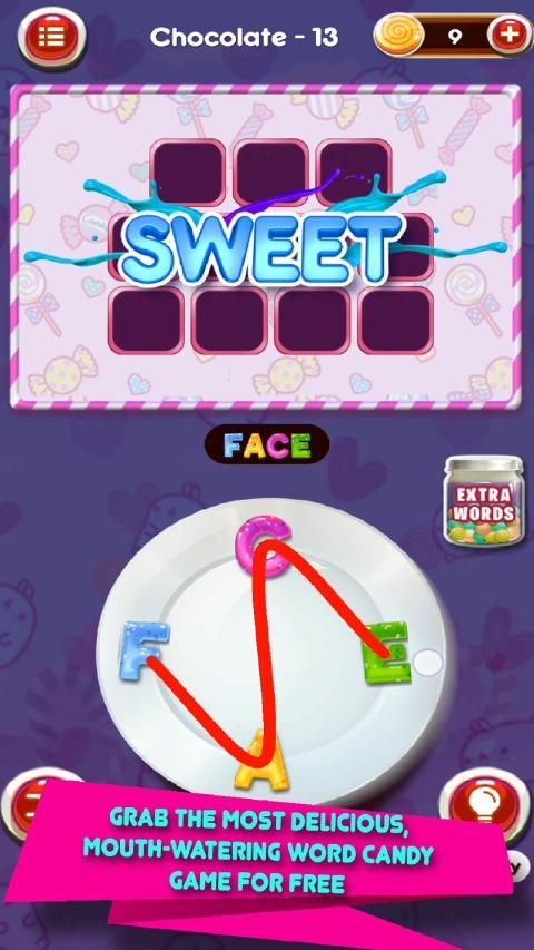 मुफ्त में 500 से अधिक स्तर खेलें, मुंह में पानी भरने वाली कैंडी के साथ, हम आपको इस वर्ड कैंडी में गारंटी दे सकते हैं - हाथापाई खोज कोई दो स्तर समान नहीं हैं।