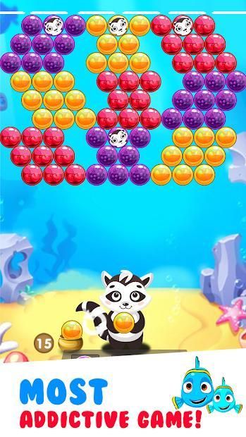 Think and blast to save the raccoon babies in go fish - bubble shooter bubble shooter game
