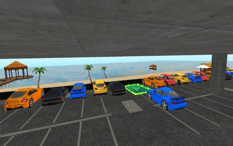 Race head-to-head and park on beach side in Mr. Parking