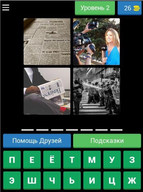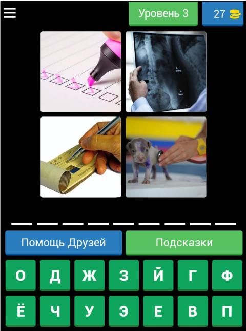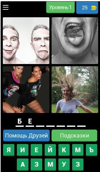 Правила очень просты: По 4 картинкам (фоткам) нужно отгадать объединяющее слово. Посмотрите на картинки – проведите аналогию и угадайте слово. Если вы застряли на каком-то уровне – не беда, используйте подсказки "Удалить ненужные буквы", "Вставить правильную букву" или "Пропустить уровень".
