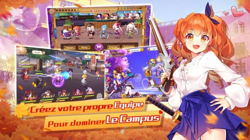 Girls X Battle - Français est un jeu aimé par des millions de joueurs, vous vous invitez sur un campus pour faire des aventures. Le campus est votre forteresse, vous vous appuyiez sur vos compagnons pour vivre, vous battre dans ce lieu!