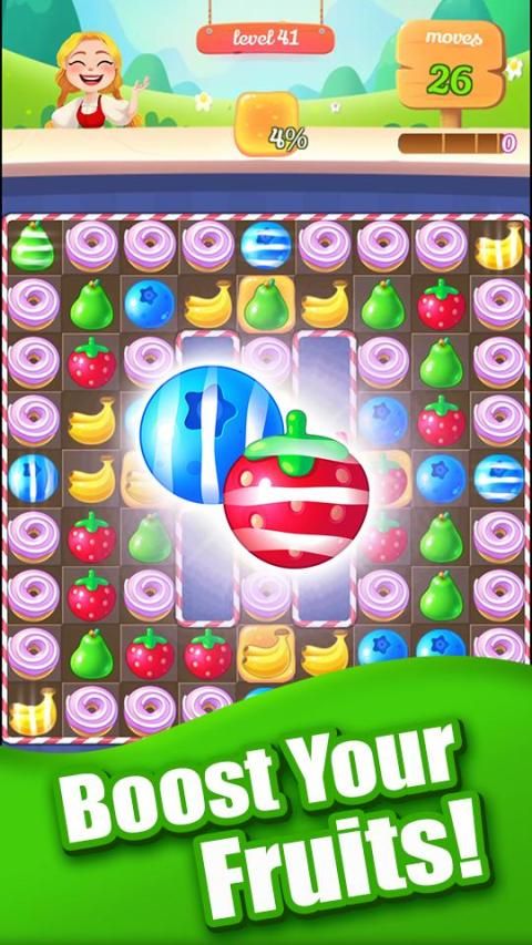 Smash fruits to get the magic fruits, they will help you to get through the 900+ puzzle levels. You can try to crush the fruits and desserts with wisdom.