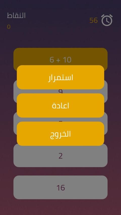 * اللعبة تحتوي على الجمع - الطرح - القسمة - الضرب
