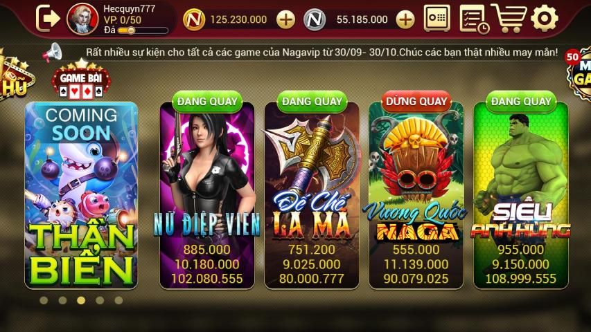 NaGaVip - किंवदंती वापस आ गई है, आधिकारिक तौर पर रखरखाव के 1 समय बाद वापस आ रही है। शाही शैली के ग्राफिक्स के साथ, खेल में पारंपरिक से आधुनिक तक विविध खेल हैं।