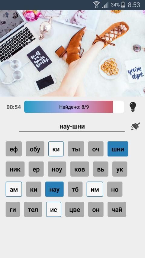 В каждом раунде игры вам предстоит отыскать на картинке несколько слов. Все слова разбиты по буквам.